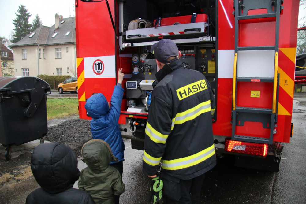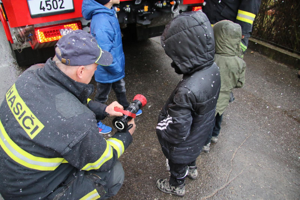 Děti měly z návštěvy hasičů ohromnou radost.