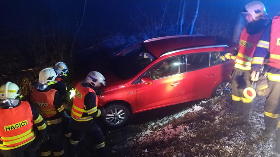FOTO: Na Albrechťáku havarovalo auto, řidič nezvládl zatáčku a vylétl ze silnice