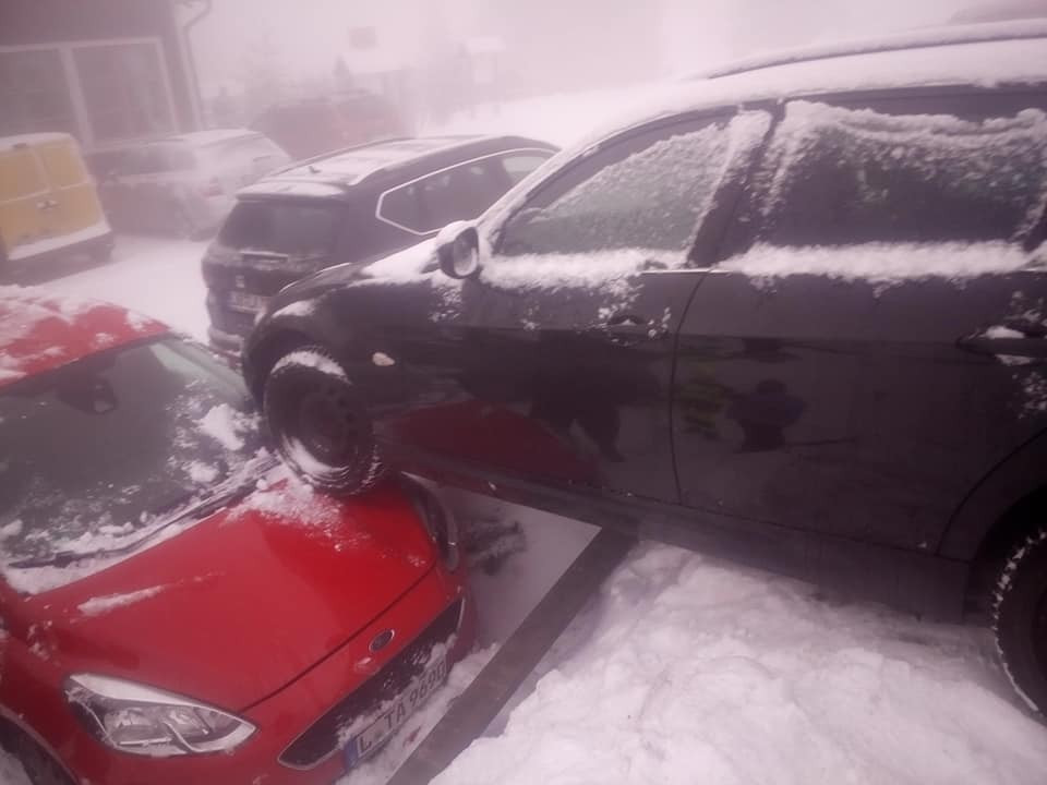 Kuriózní nehoda na Smědavě. Auto na parkovišti vjelo na jiný vůz