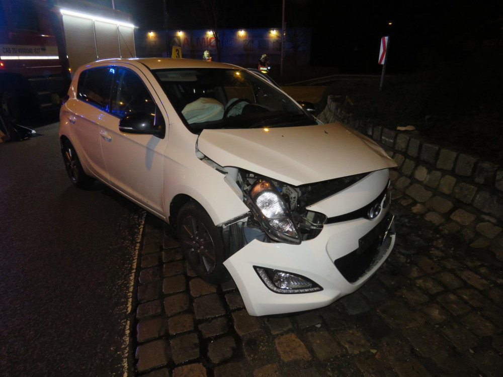 FOTO: Při najíždění na kruháč prý usnula. Auto narazilo do zdi