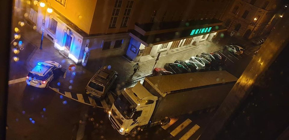 Zmatený řidič kamionu zablokoval silnici před jabloneckou radnicí. Vjel do jednosměrky a uvízl