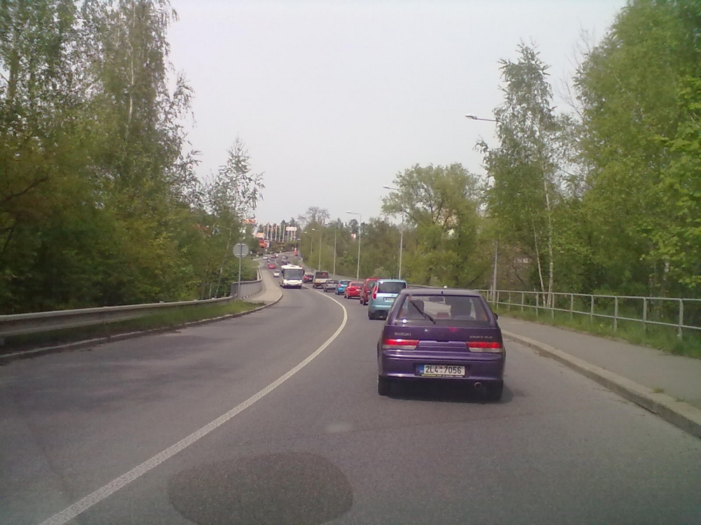 Záseky na Letné. Auta stojí od Totalu až po Kaufland
