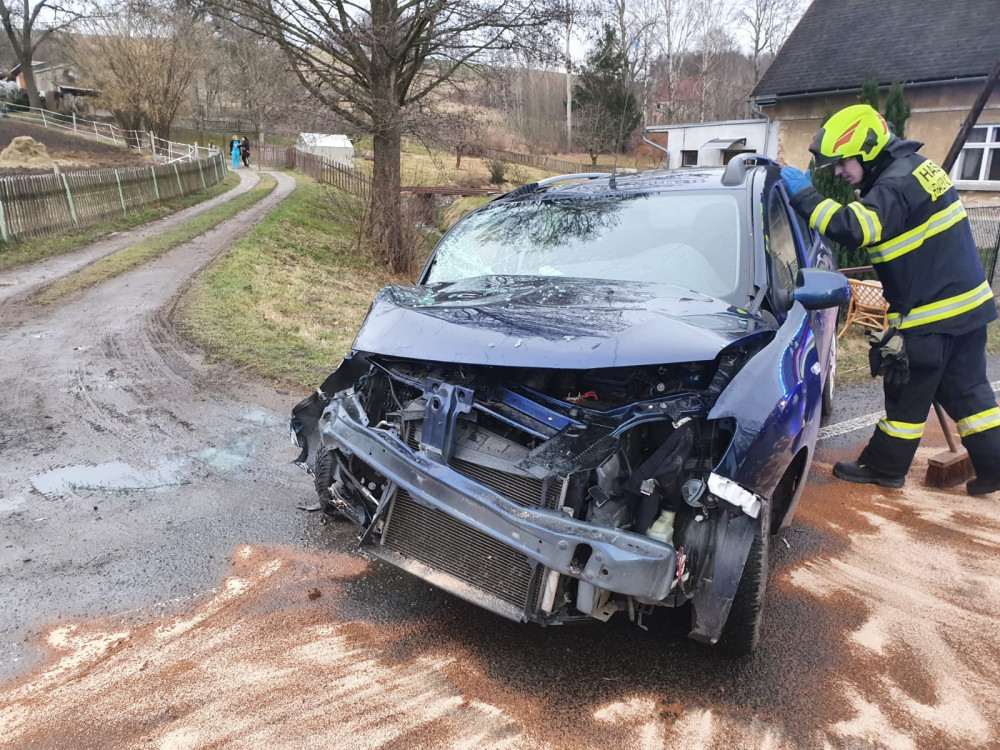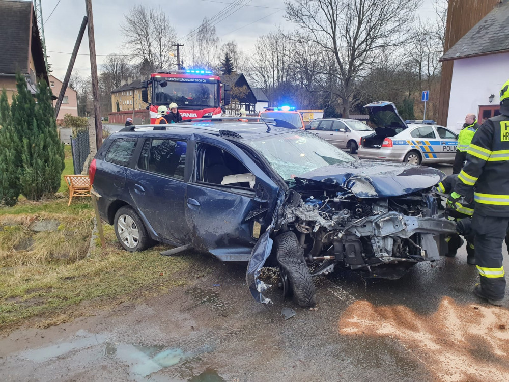 FOTO: Auto ve Václavicích narazilo do betonového sloupu. Řidič se zranil