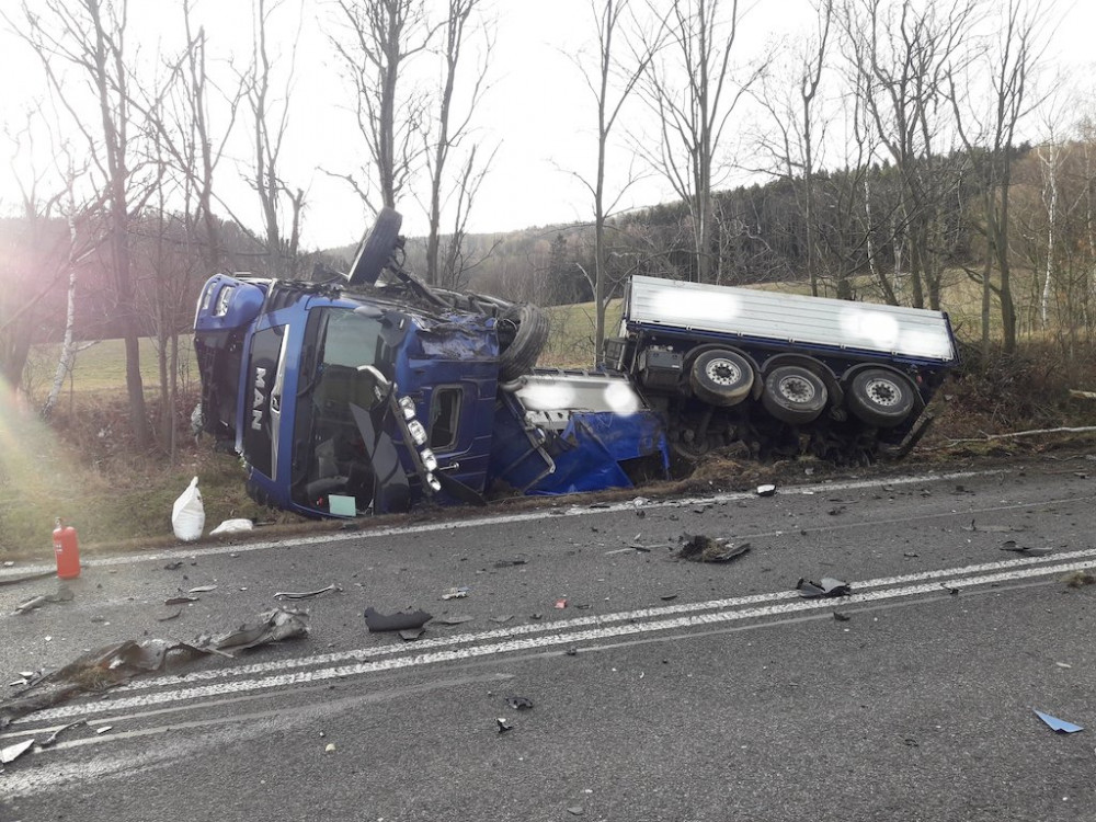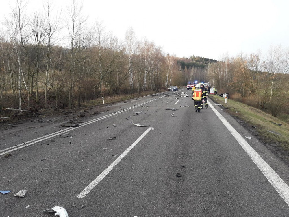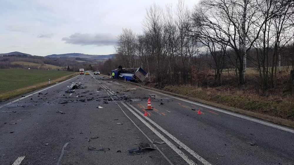 Tragická nehoda u Bílého Kostela. Srážku s náklaďákem nepřežil řidič auta