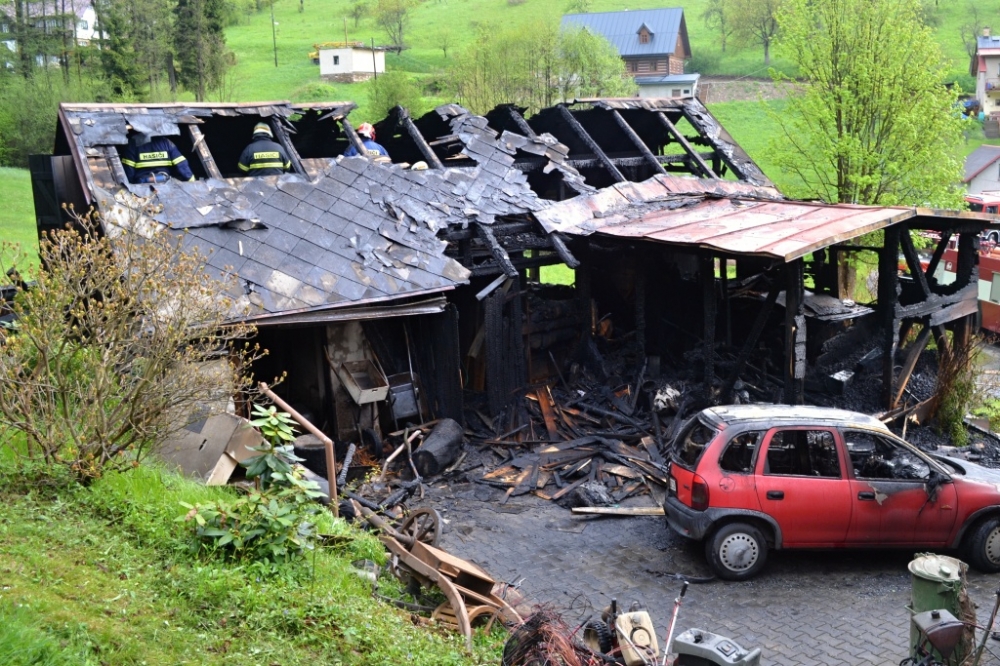 Požár na Semilsku, plameny pohltily stodolu i automobil. Foto: HZSLK