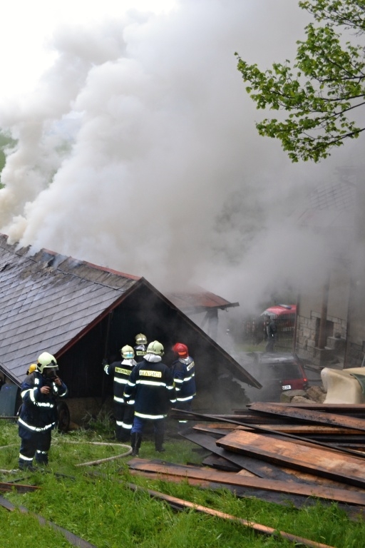 Požár na Semilsku, plameny pohltily stodolu i automobil