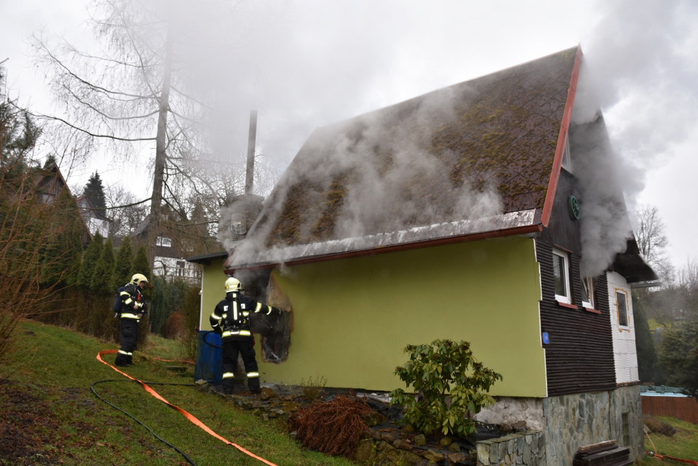 Ve Skalici u České Lípy zasahovali hasiči u požáru zahradní chatky