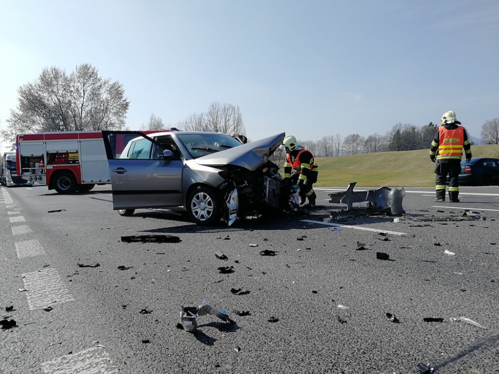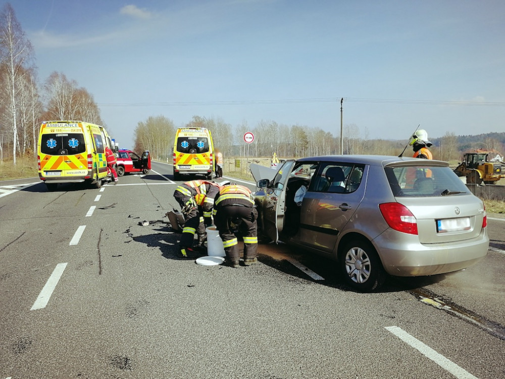 FOTO: Nehoda u Jablonného. Při čelním nárazu se zranili dva lidé a dítě