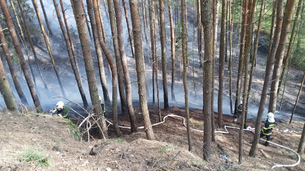 FOTO, VIDEO: Deset jednotek hasičů i dron. V Tuhani hořel les
