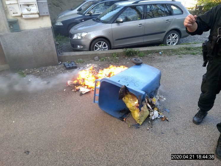 Hořící popelnice ohrozila auta u libereckého nádraží. Strážníci a hasiči je ochránili