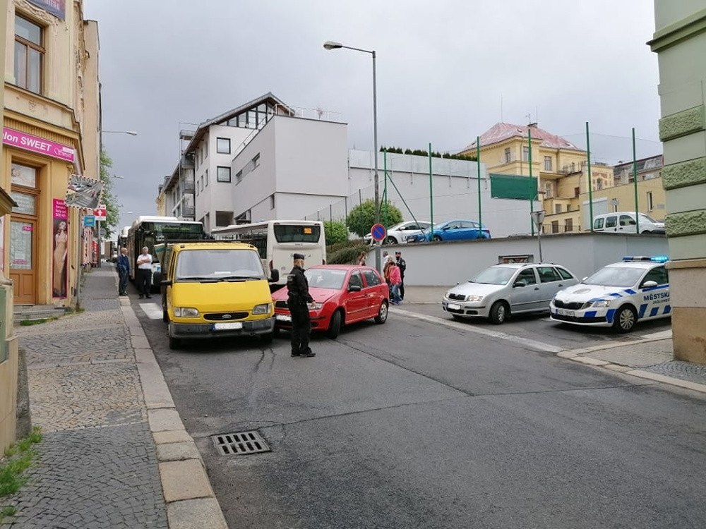 V Jablonci se střetla dodávka s osobákem. Na místě se tvoří kolony