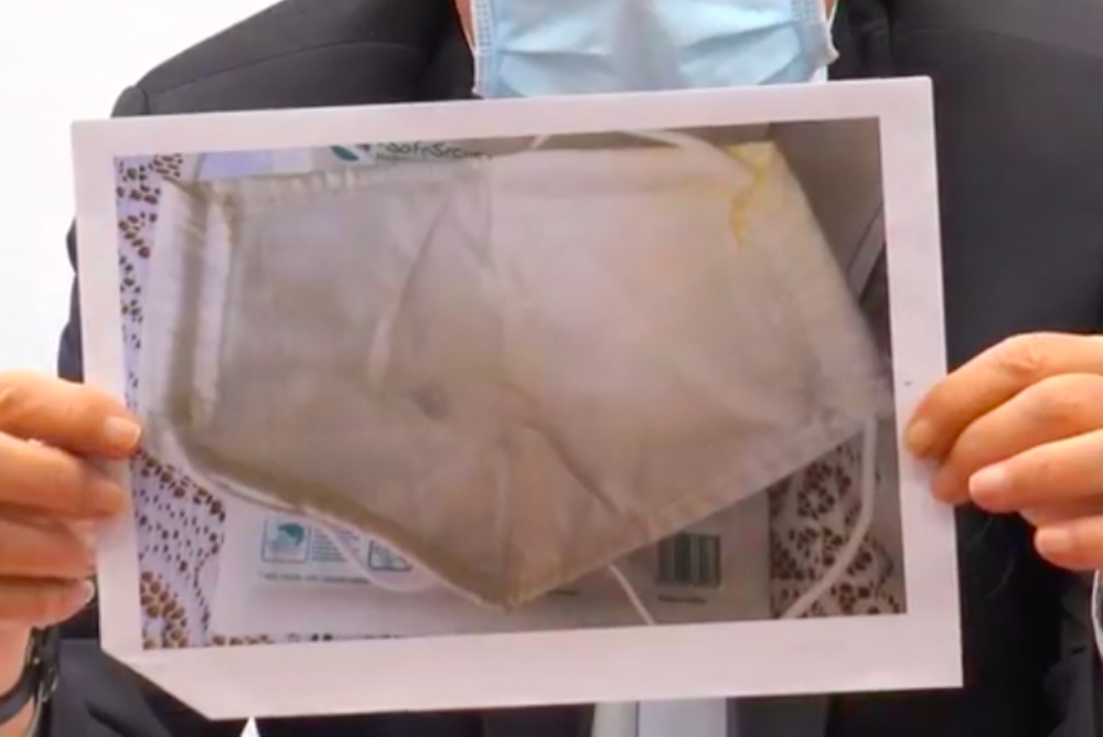 V zásilce zdravotnického materiálu byl zabalený použitý respirátor. Kraj stáhl celou šarži
