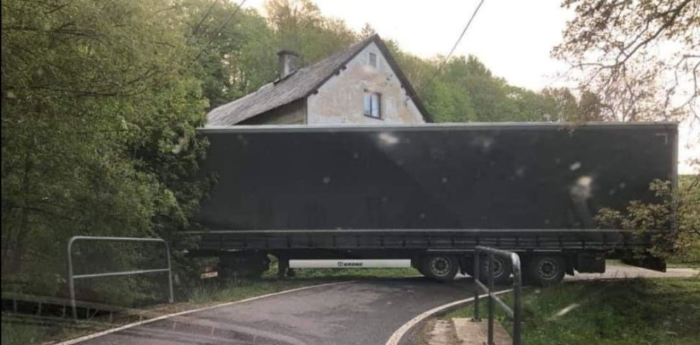 V Radoňovicích naboural kamion do dopravního značení. Místo je neprůjezdné