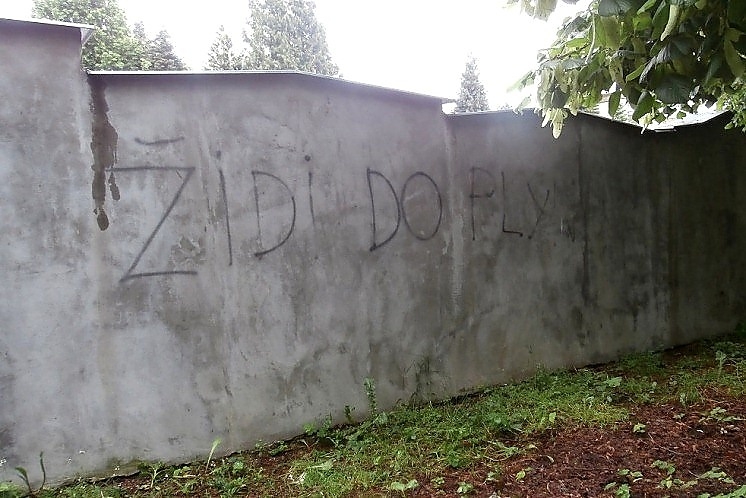 Židi do plynu, nasprejoval kdosi na hřbitově v Ruprechticích