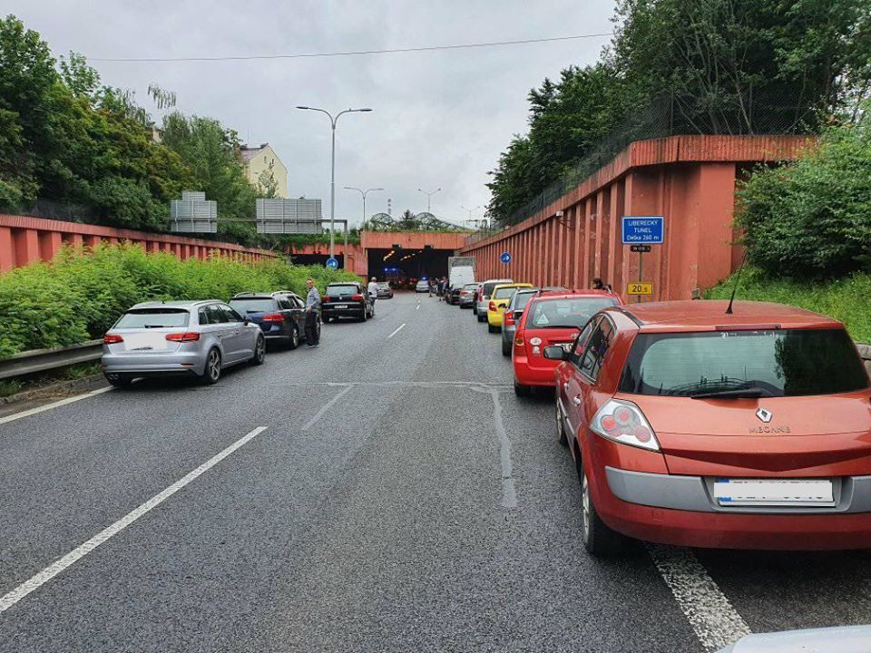 Průtah na Prahu zablokovala nehoda tří aut v tunelu. Dva lidé se zranili
