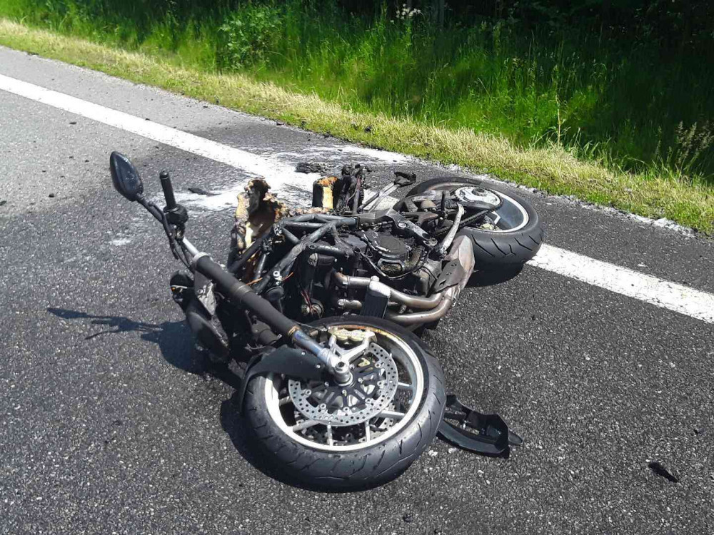 Motorkář cestou z Ještědu nezvládl řízení na mokré vozovce, skončil ve svodidlech