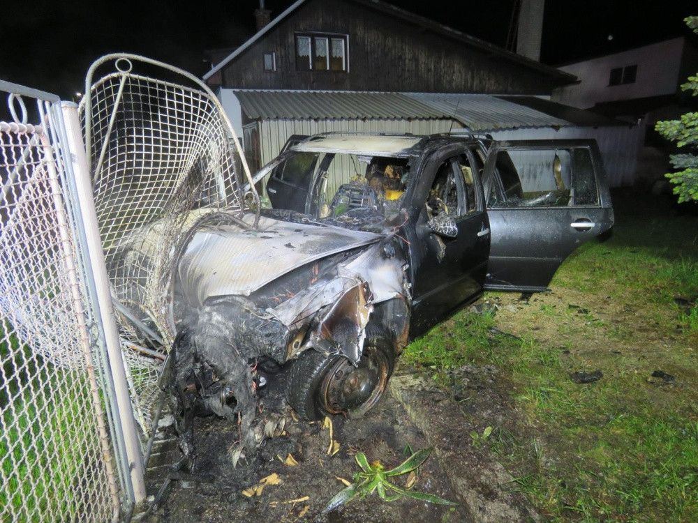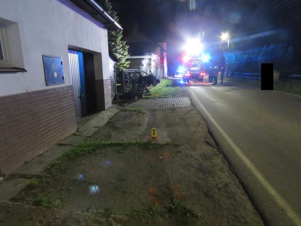 Podnapilý řidič naboural do plotu. Automobil začal hořet, ale naštěstí stihl muž vystoupit
