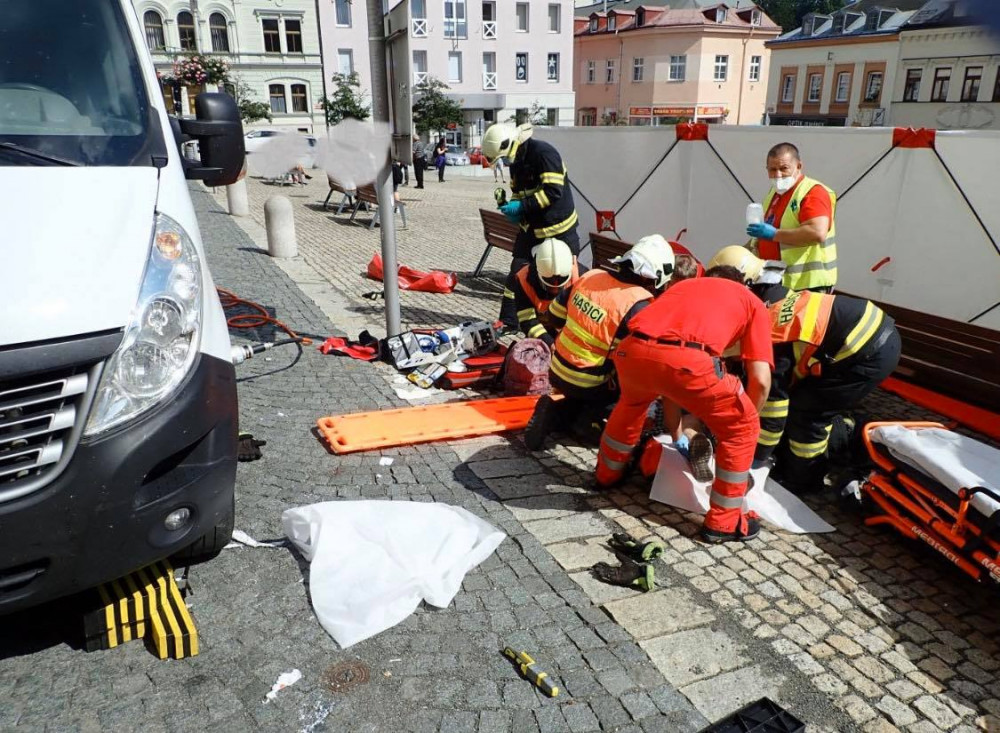 Řidič při couvání na náměstí v Jablonci srazil chodkyni. Hasiči ji museli vyprostit
