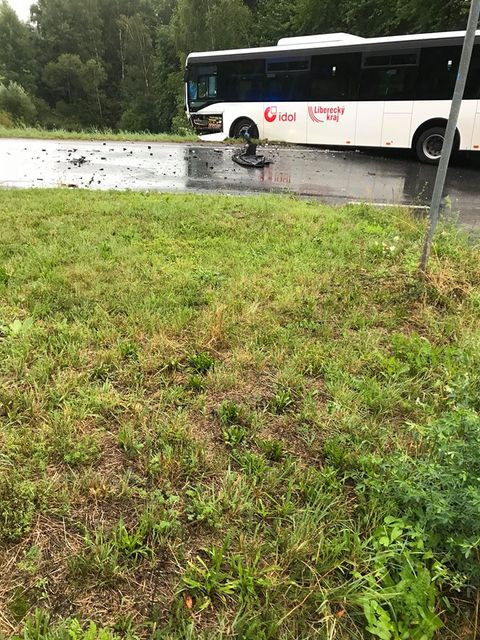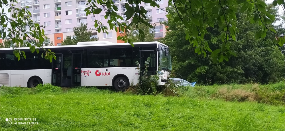Krev a panika. Na Kunratické se srazil autobus s osobním autem, pět zraněných
