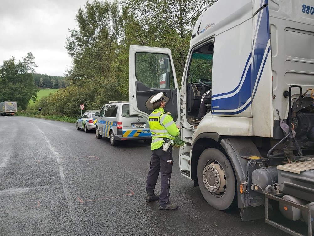 Policisté při kontrolách náklaďáků odhalili nedodržování přestávek i špatný stav vozidel