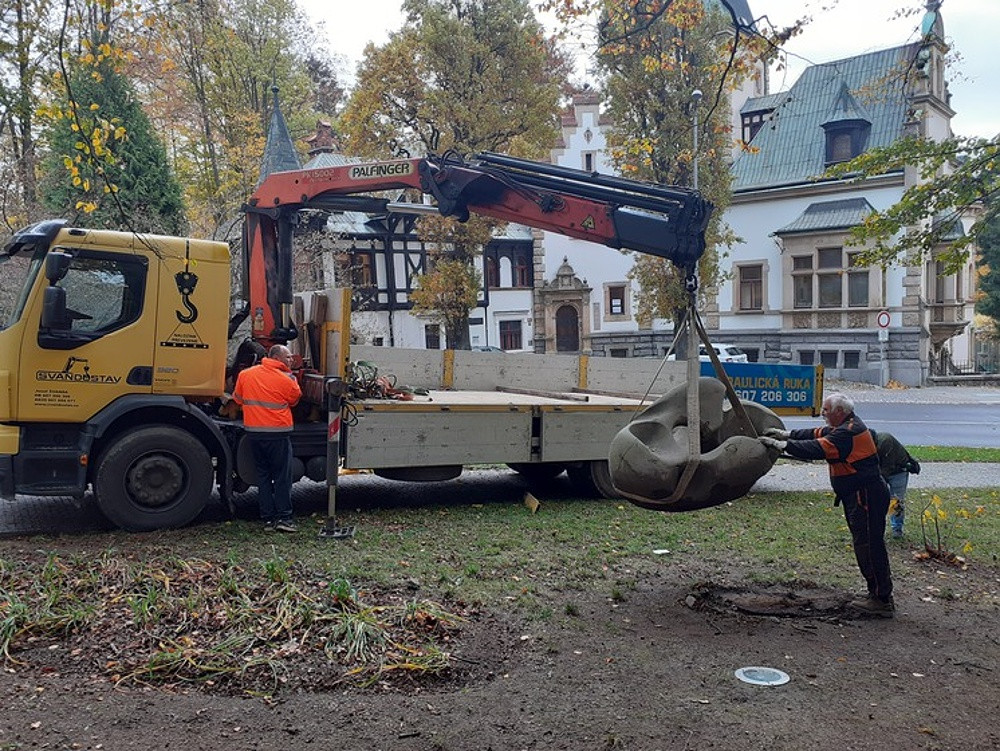 Socha „Po válce“ už se usídlila na novém místě v parku Clam-Gallasů