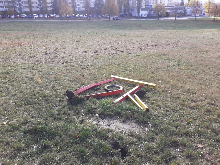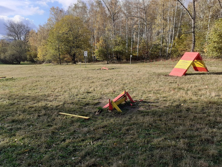 Někdo se vyřádil na psím agility u Hokejky, z překážek zbyly hromádky dřeva