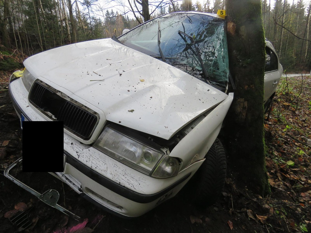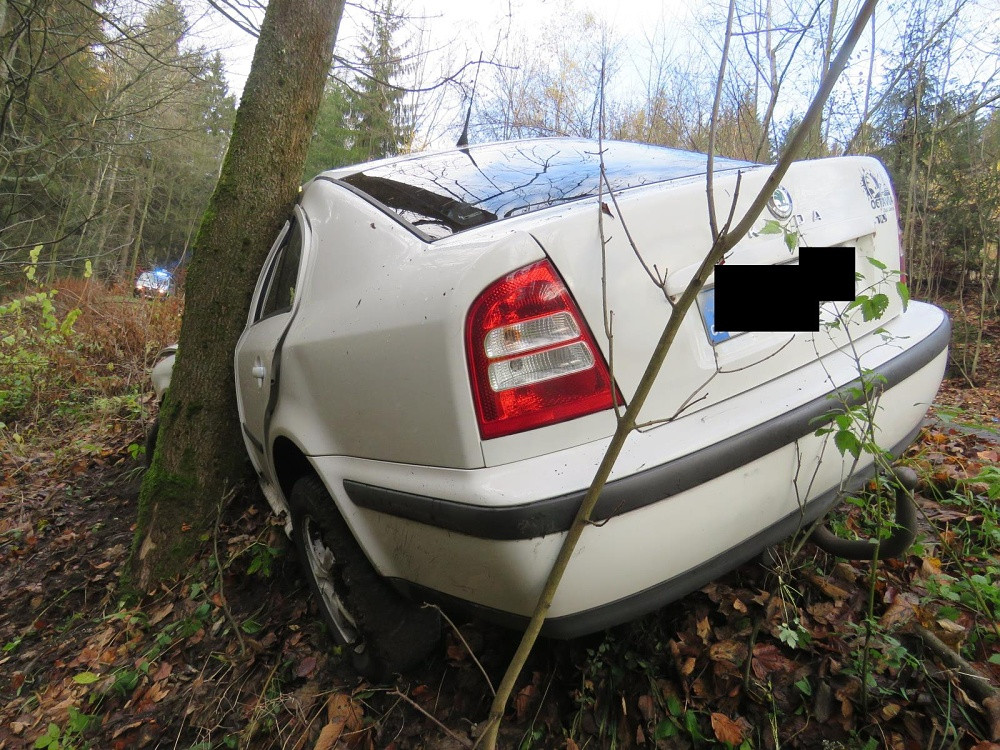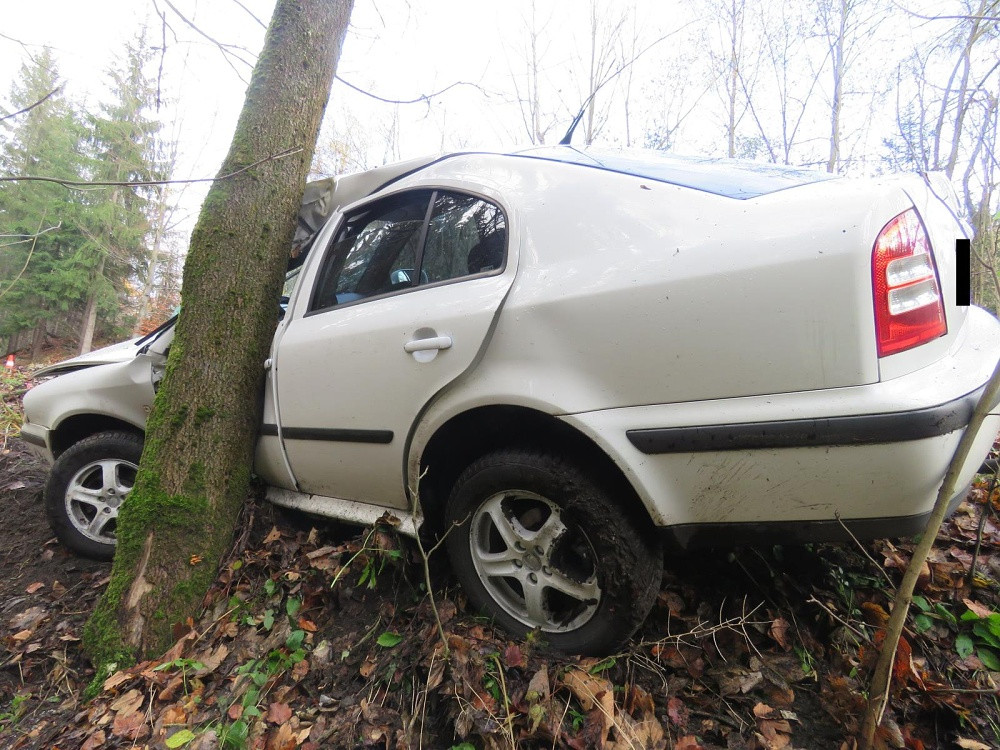 V zatáčce dostal smyk a skončil ve stromě