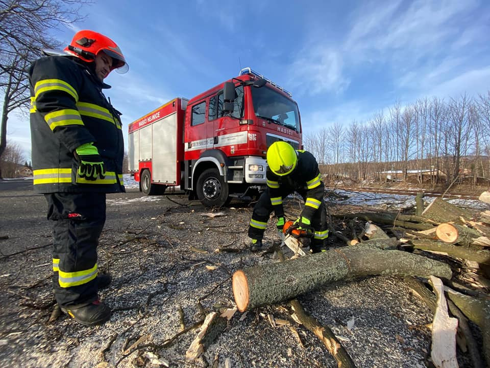 Popadané stromy a větve. Hasiči odstraňovali následky silného větru
