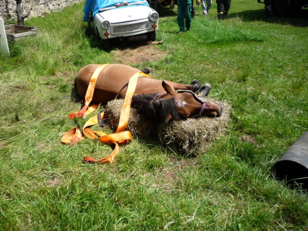 Na pomoc koni musela přijet těžká technika. Zvedl ho traktor