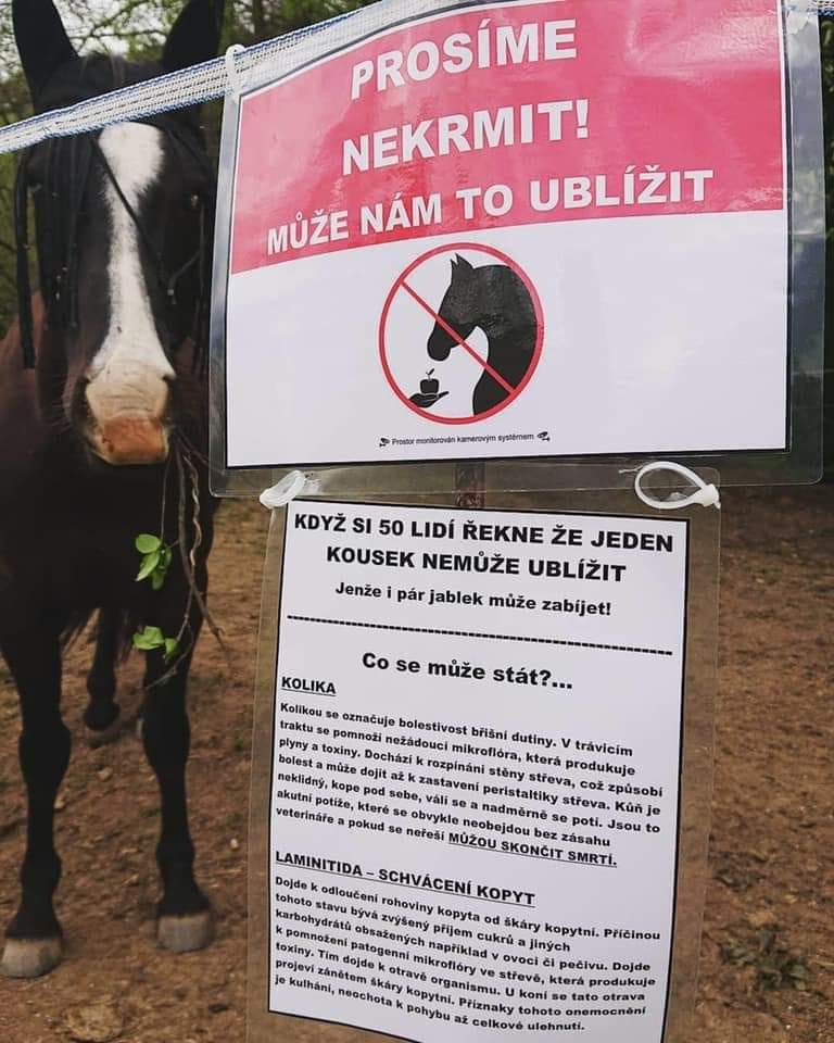 Cizí koně se nekrmí, ale je to marný, zlobí se chovatelé. I jablko nebo chleba může zvíře zabít