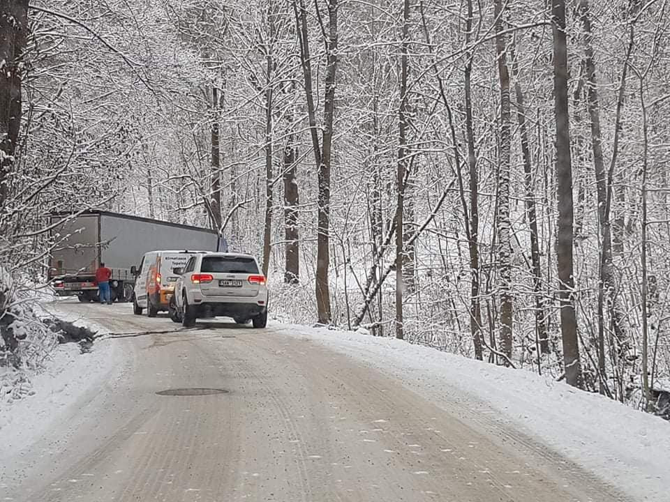 Cestu z Jeřmanic na Rádlo ucpal kamion. Na místě je policie, místem neprojedete