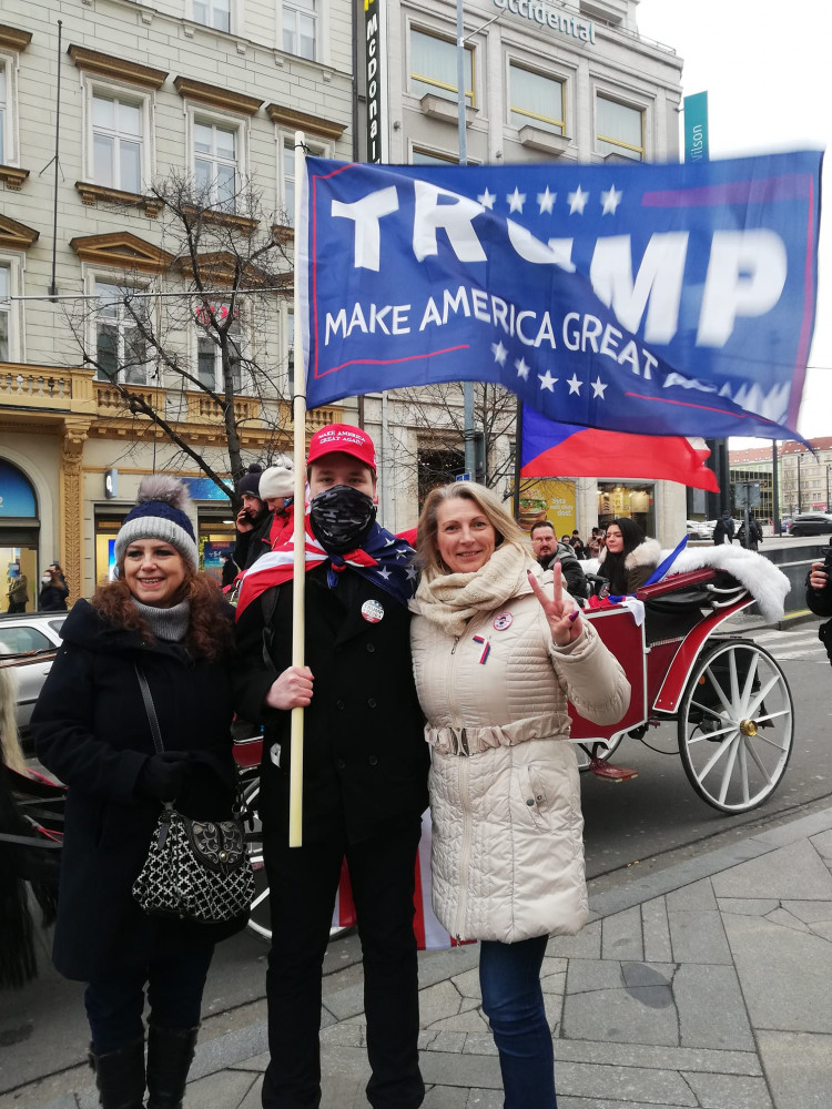 Lenka Tarabová (vpravo) na demonstraci na podporu končícího amerického prezidenta Trumpa.
