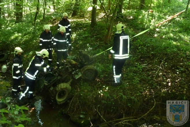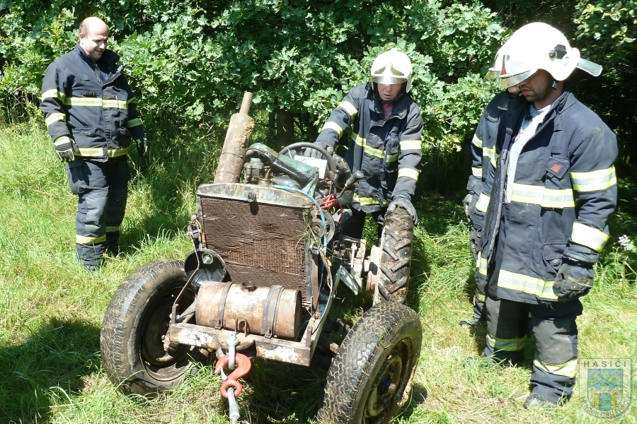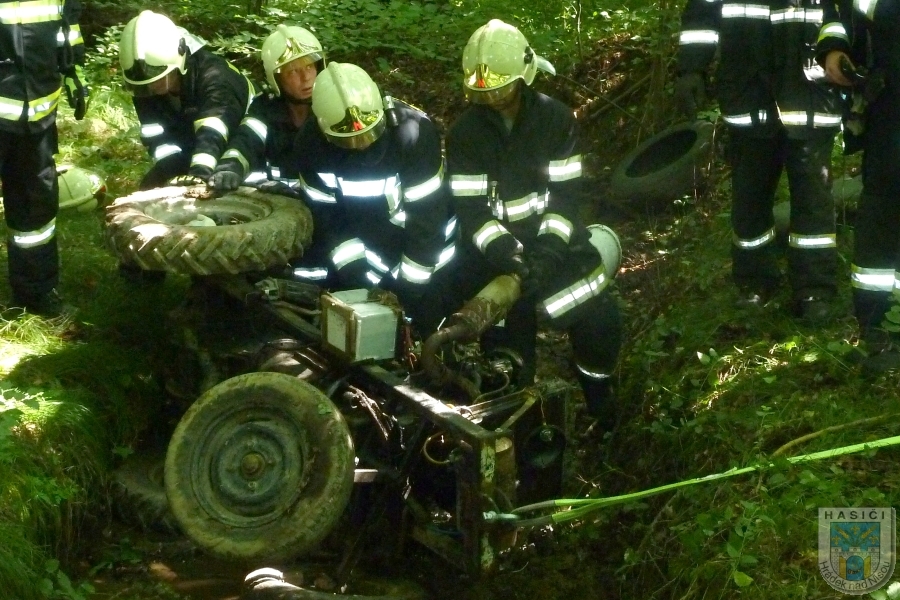 Pod převráceným traktorem u Dolní Suché zemřel řidič. Foto: Hasiči Hrádek nad Nisou