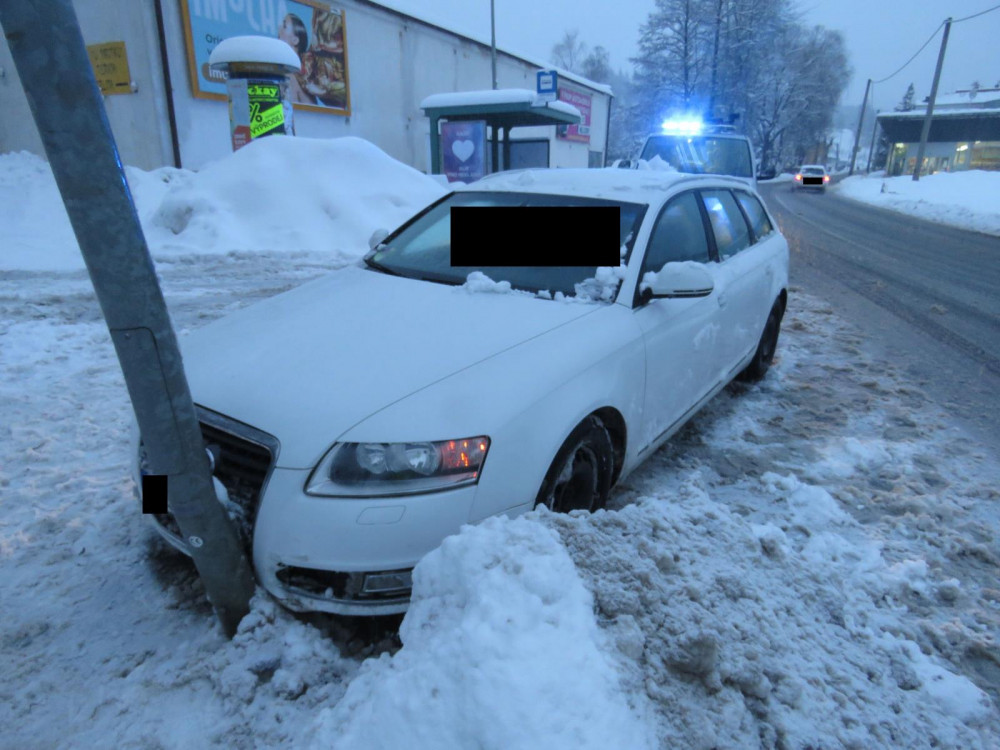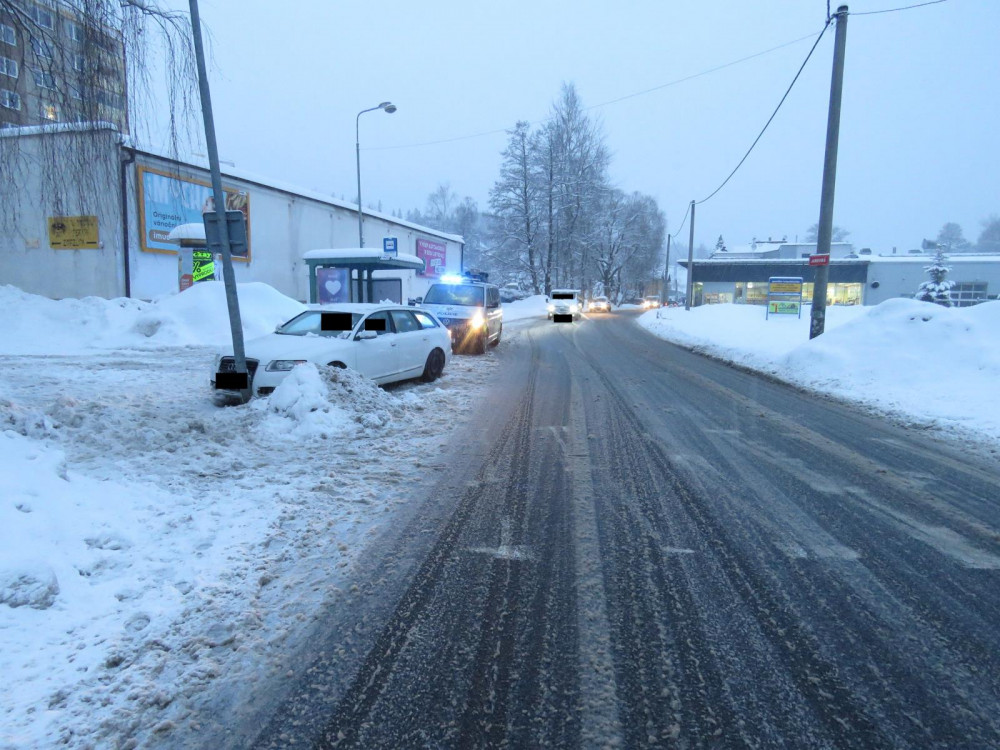 Kvůli rychlosti nespatřil řidič včas chodce. Místo do něj narazil do sloupu