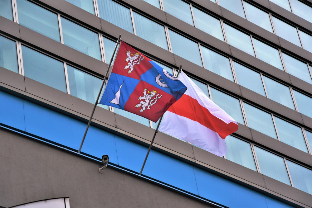 Vyvěšenou vlajkou Běloruska vyjadřuje kraj solidaritu s oběťmi brutálních represí