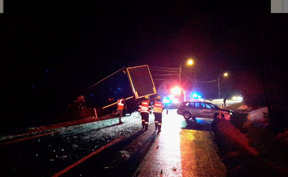 Liberecký kraj trápí náledí. Nehoda auta s kamionem na několik hodin uzavřela silnici I/10
