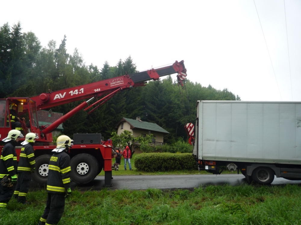 Náklaďák, se kterým se utrhla krajnice, vytáhl jeřáb