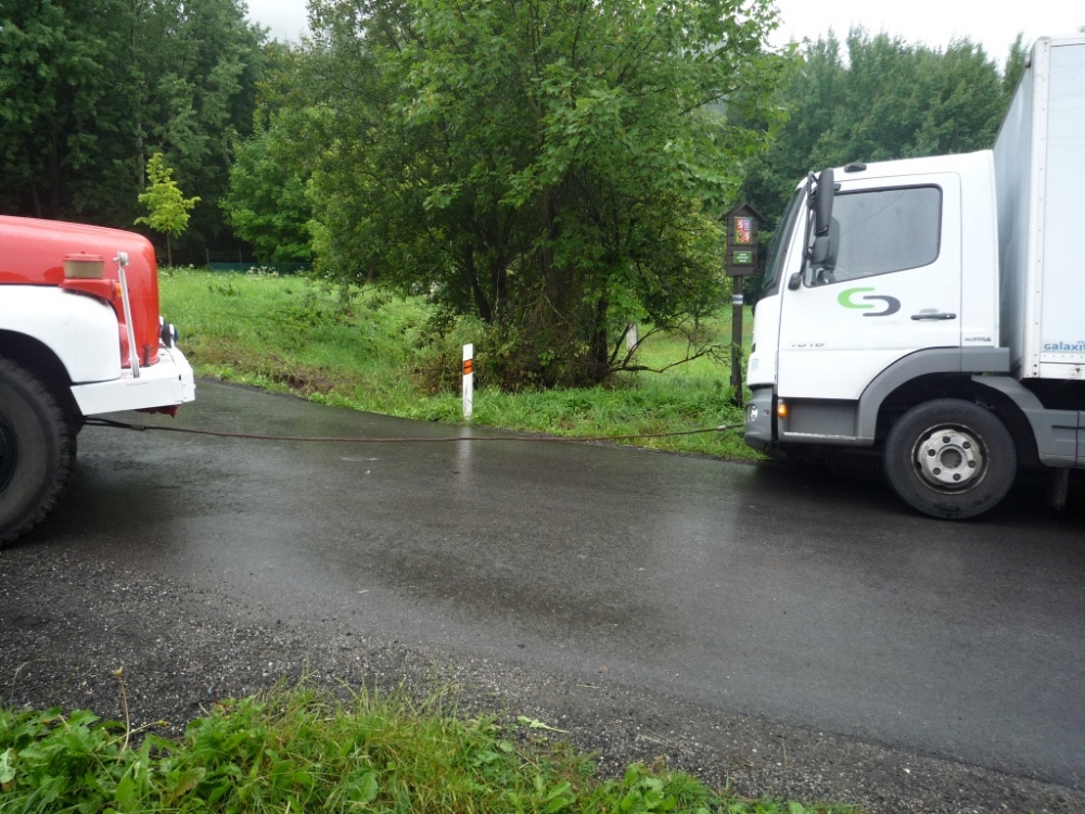 Náklaďák, se kterým se utrhla krajnice, vytáhl jeřáb. Foto: HZSLK