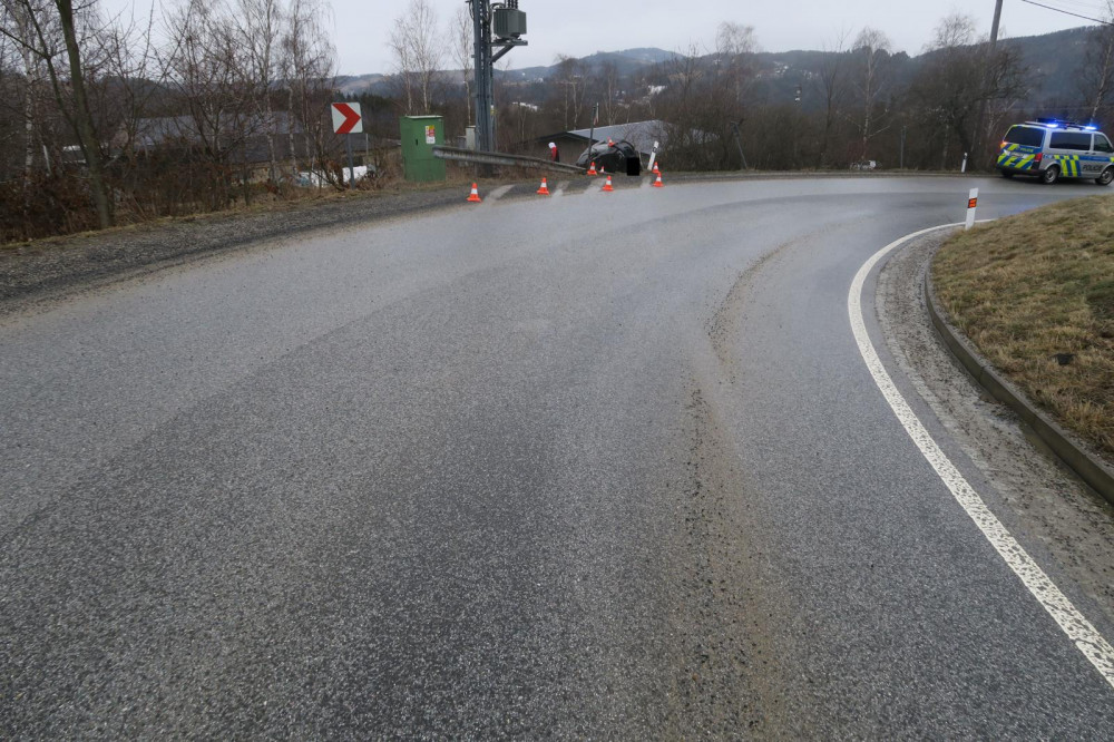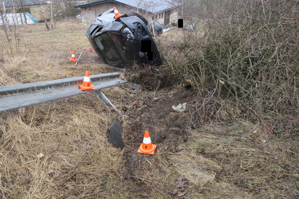 Řidič ve smyku vyletěl ze silnice a narazil do svodidel, škoda přesáhla 100 tisíc korun