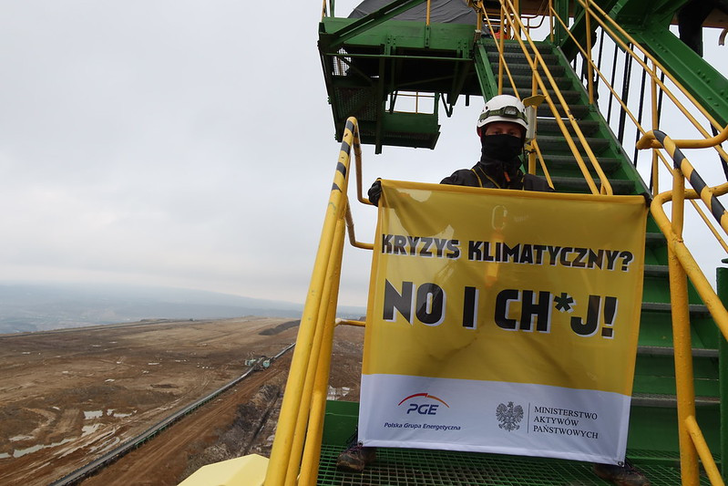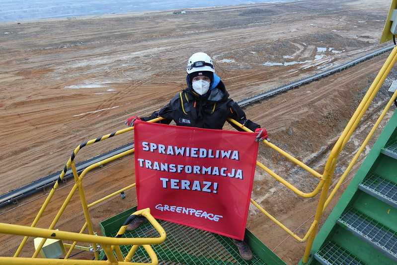 Aktivisté z Greenpeace zablokovali rypadlo v dole Turów. Krade vodu z českého území, vadí jim