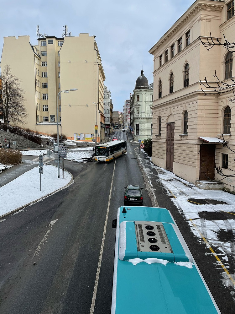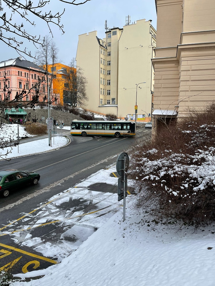 Autobus se zasekl na ostrůvku pod Šalďákem. Dopravní podnik vyřešil záležitost interně