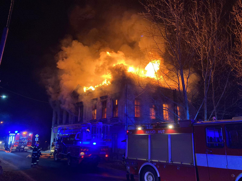Požár domu v Pěnčíně. Neobydlený objekt byl celý v plamenech