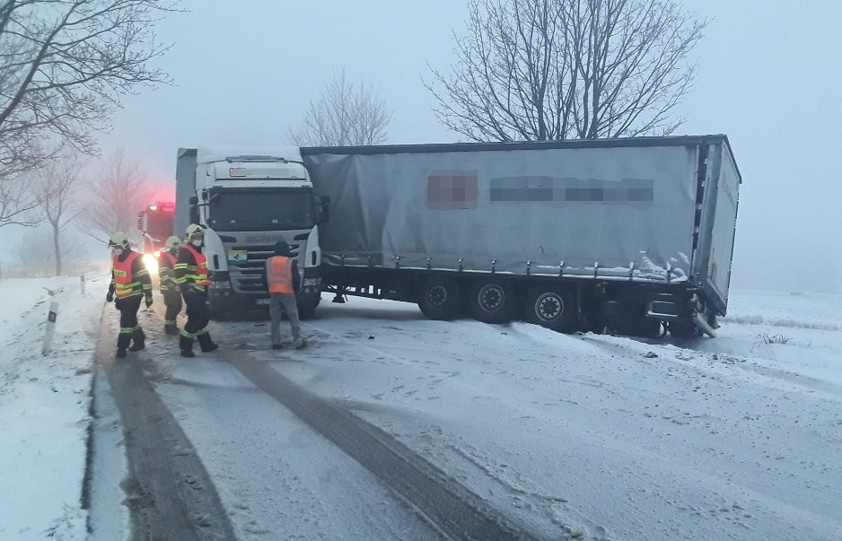 Vzpříčený kamion zablokoval Albrechťák. Probíhá vyproštění