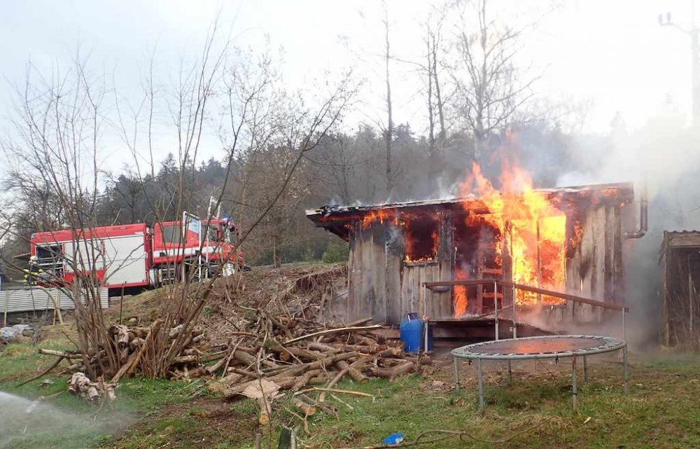 Hasiči likvidovali požár venkovní sauny. Od kamen chytila podlaha