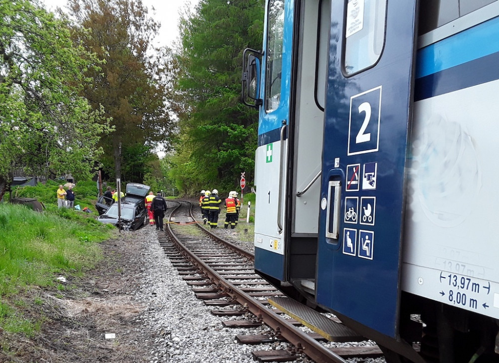 Auto u Lomnice vjelo na přejezdu přímo pod vlak, tři zranění