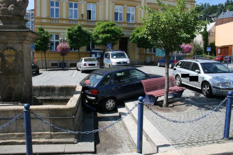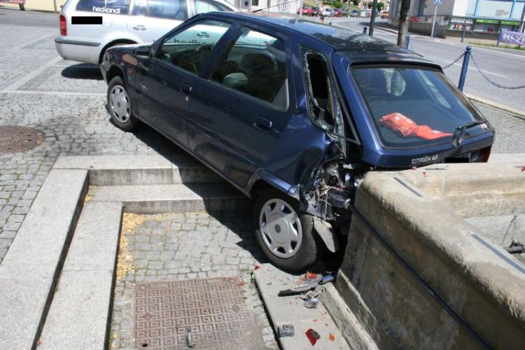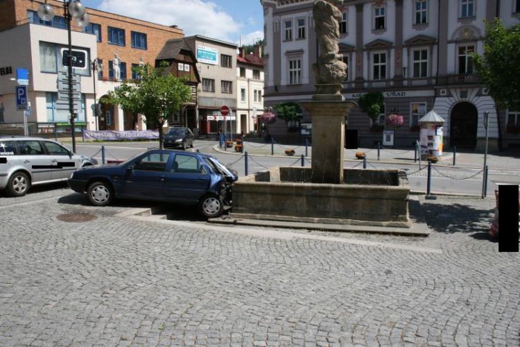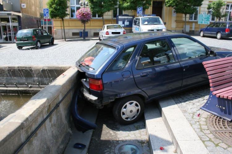 Řidiče zastavila až kašna. Foto: Policie ČR