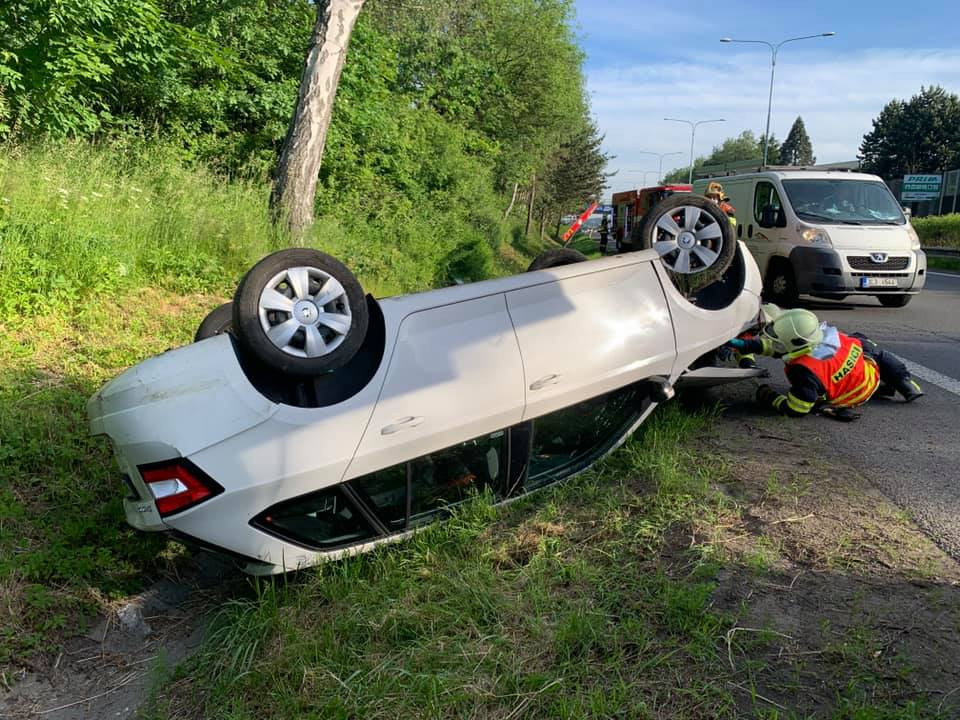 Nákladní auto na průtahu Libercem naráželo zezadu do Fabie, ta se převrátila na střechu