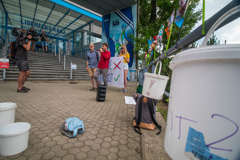 Nehandlujte. Řešte! Před Krajským úřadem demonstrovali odpůrci Turówa, přišlo jich jen pár
