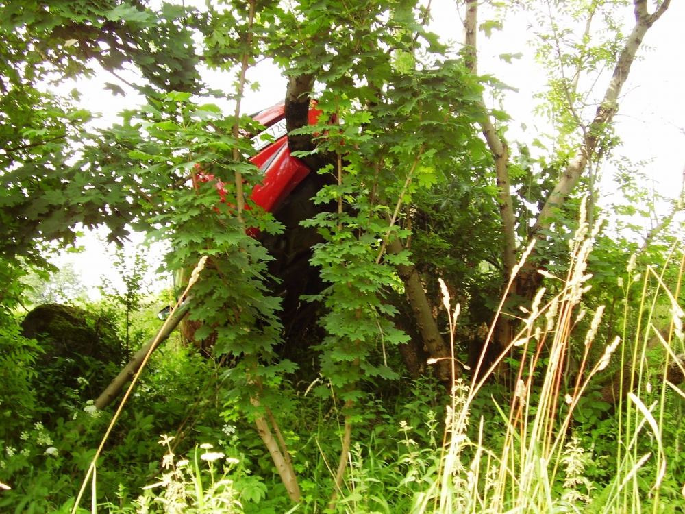 Štěstí v neštěstí. Vylétl autem do lesa, nic se mu nestalo