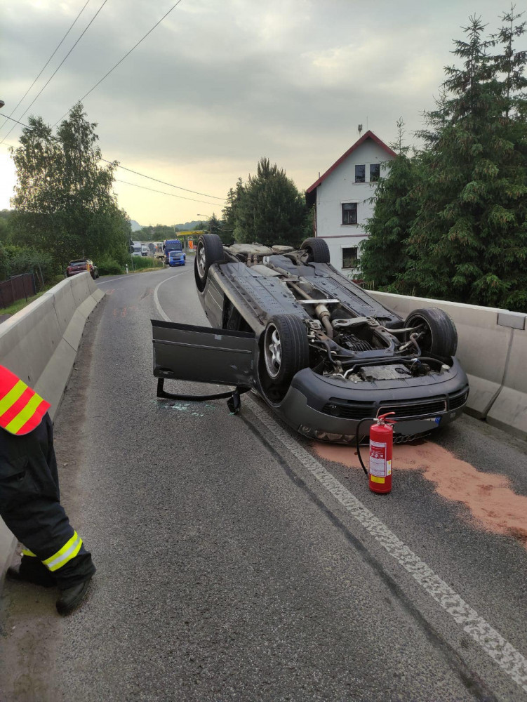 Mladý řidič ve vysoké rychlosti narazil do betonového svodidla. Auto otočil na střechu